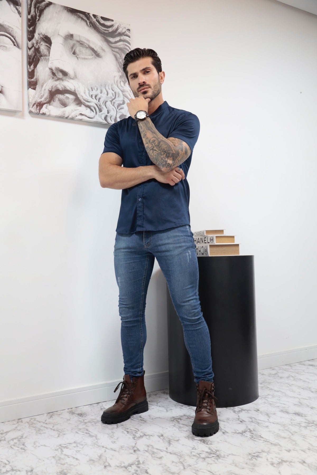 Camisa Manga Curta Social Gola Padre Azul Algodão Egípcio - Sofisticação em Cada Detalhe: Feita com 97% algodão egípcio e 3% elastano, essa camisa oferece o toque macio e a durabilidade que só o algodão egípcio proporciona. Ideal para quem busca luxo e conforto em uma peça versátil. Com manga curta, ela é perfeita para ocasiões elegantes em dias mais quentes, seja em eventos formais ou em combinações casuais-chiques. Combine com calças de alfaiataria ou jeans premium para um visual refinado. Adicione um toque de classe ao seu guarda-roupa!