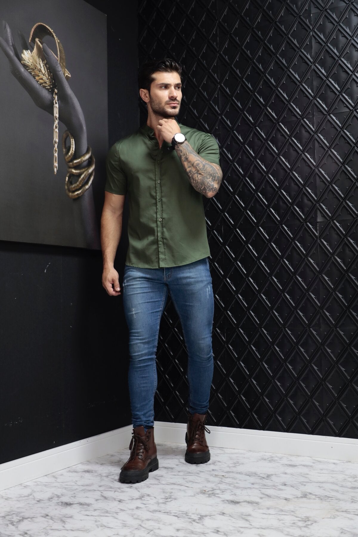 Camisa Manga Curta Social Gola Padre Verde Algodão Egípcio - Sofisticação em Cada Detalhe: Feita com 97% algodão egípcio e 3% elastano, essa camisa oferece o toque macio e a durabilidade que só o algodão egípcio proporciona. Ideal para quem busca luxo e conforto em uma peça versátil. Com manga curta, ela é perfeita para ocasiões elegantes em dias mais quentes, seja em eventos formais ou em combinações casuais-chiques. Combine com calças de alfaiataria ou jeans premium para um visual refinado. Adicione um toque de classe ao seu guarda-roupa!