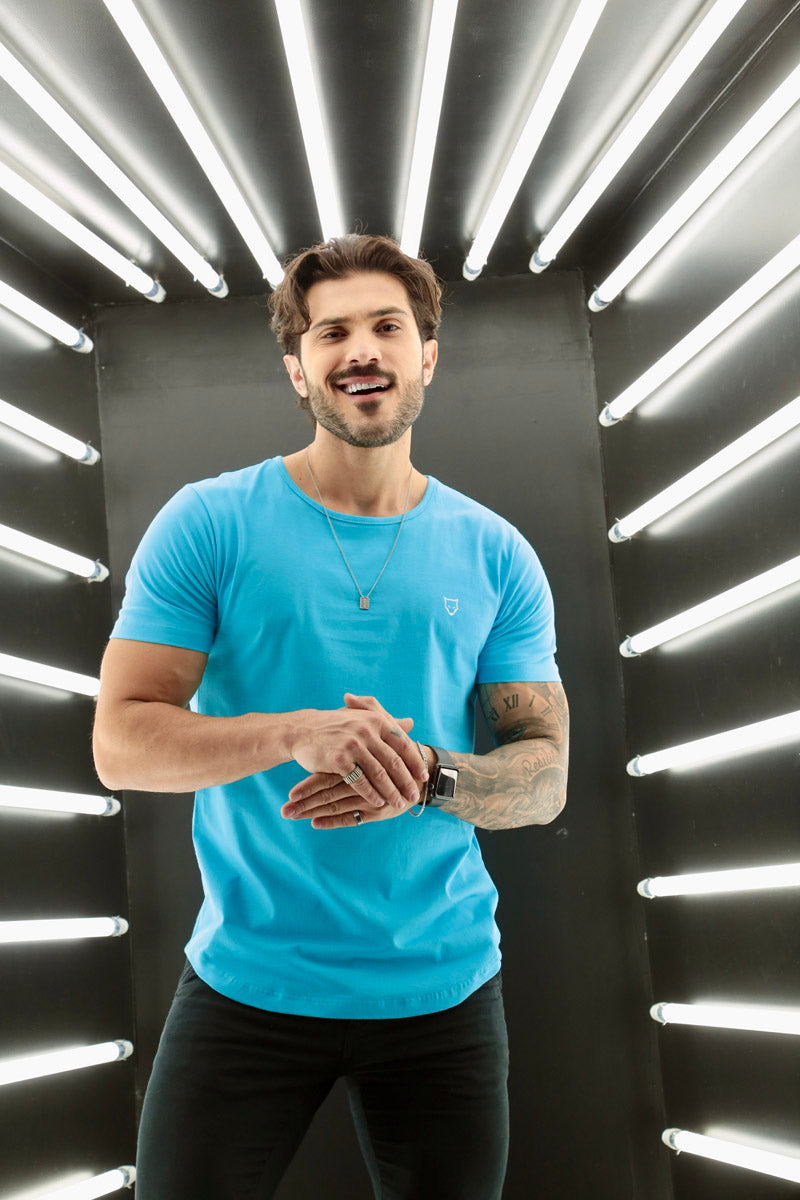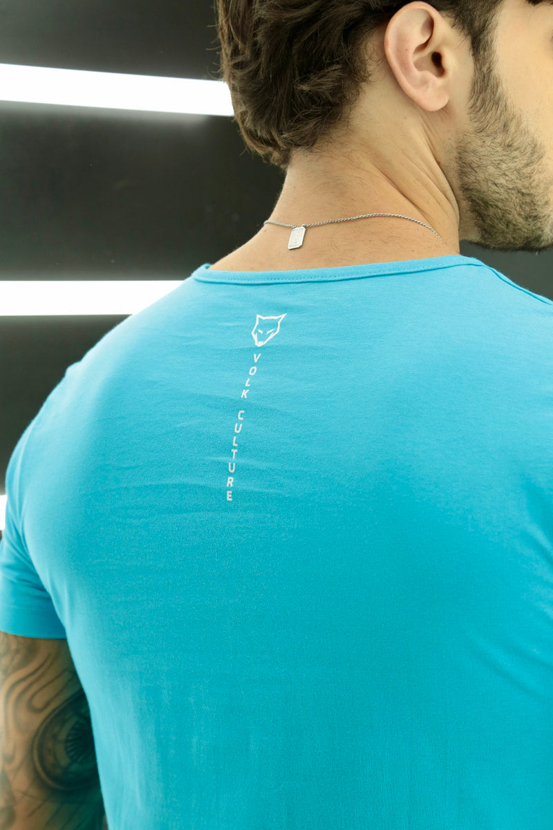 Camiseta Básica Premium Long Volk Culture Azul Piscina