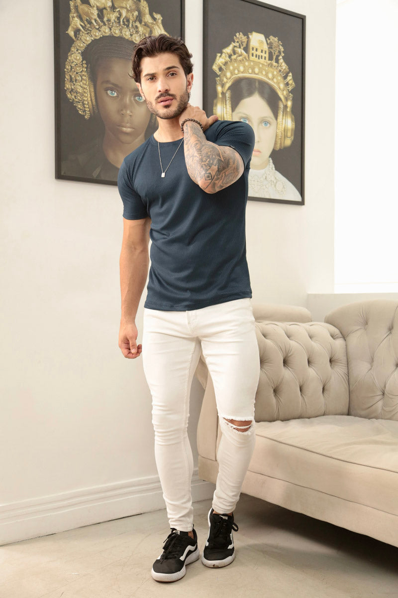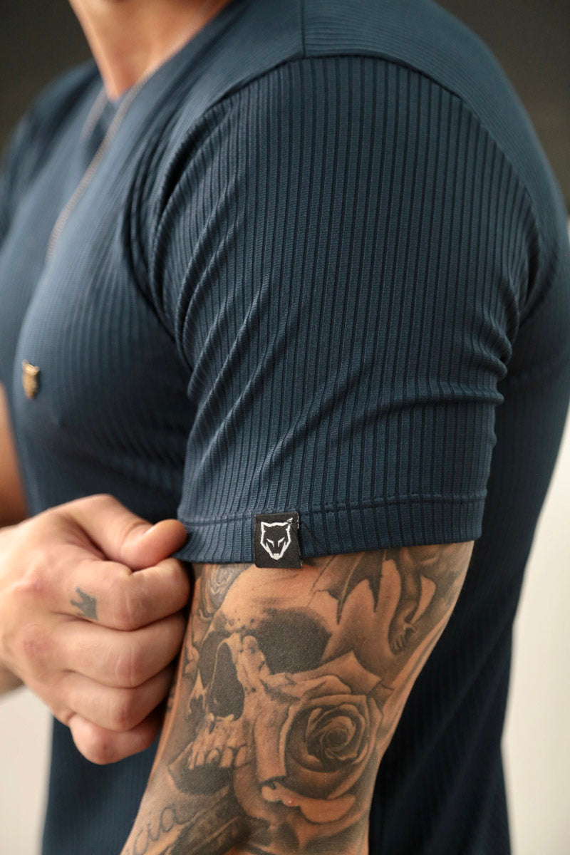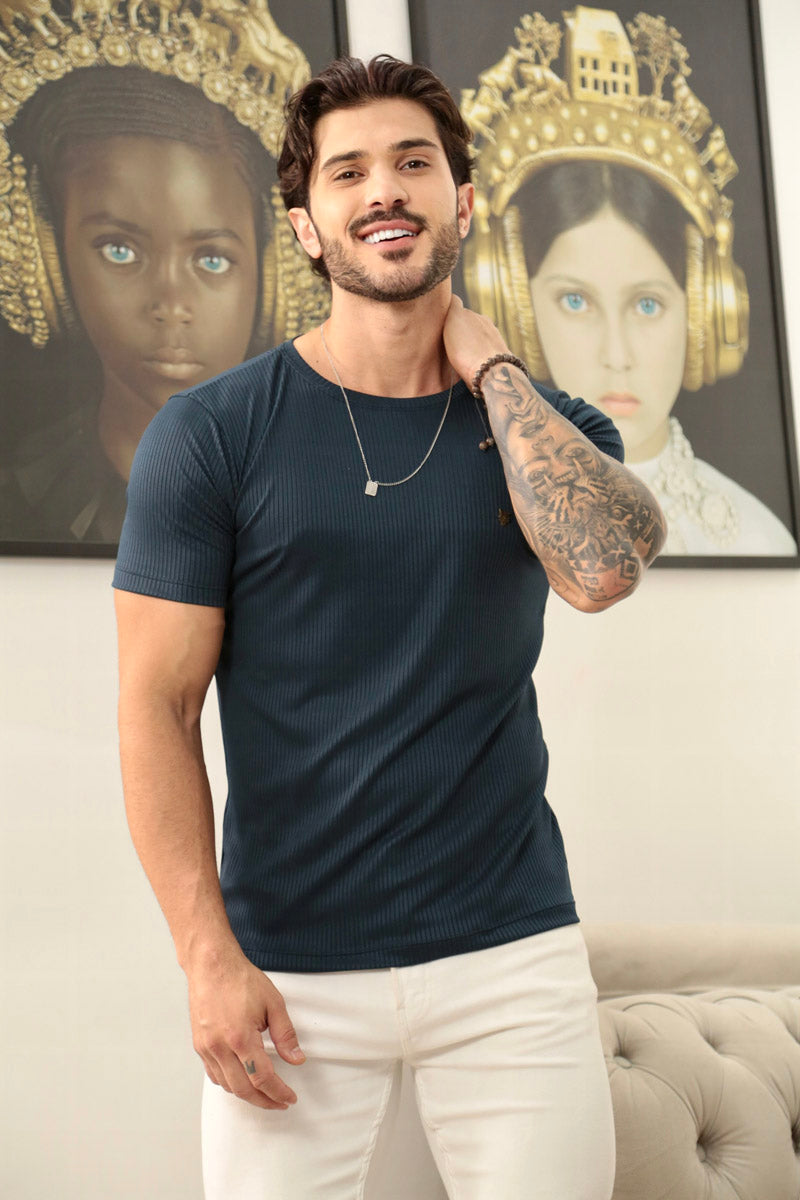 Camiseta Canelada Azul Marinho Logo Metal Volk Culture Supreme