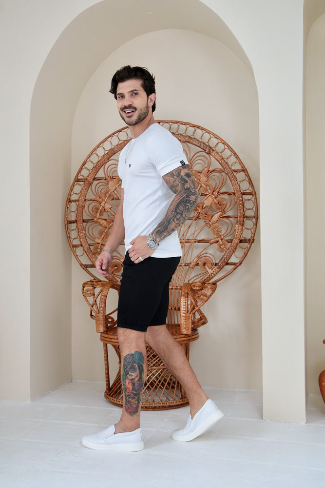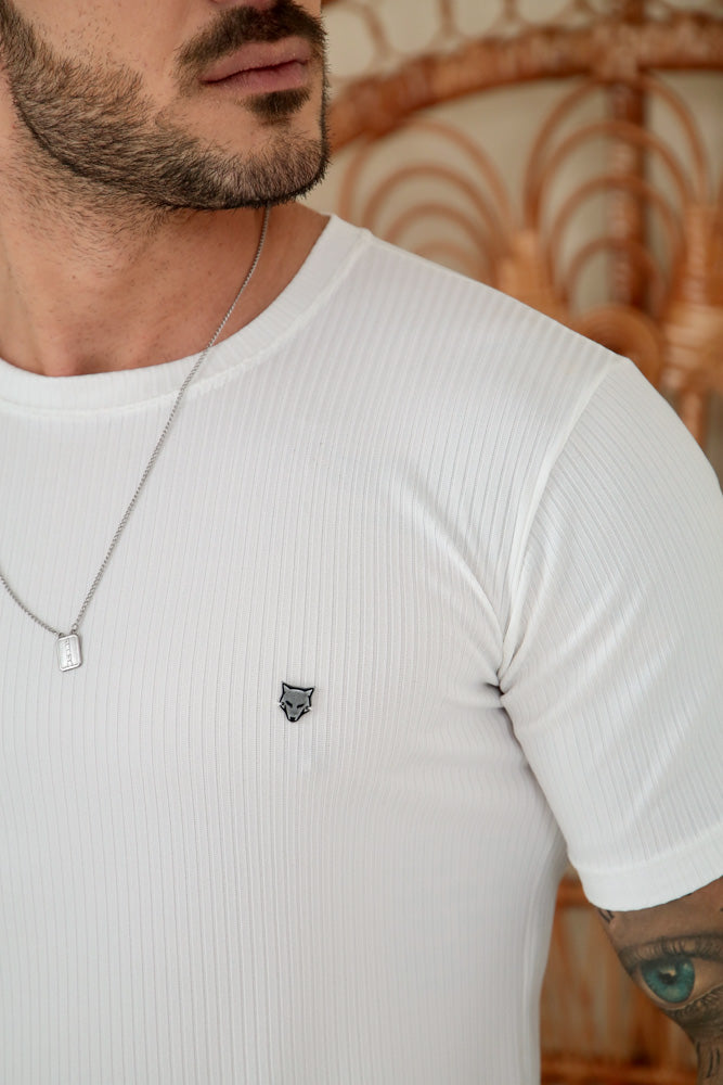 Com a Camisa Canelada Branca Logo Metal Volk Culture seu look não será o mesmo.
