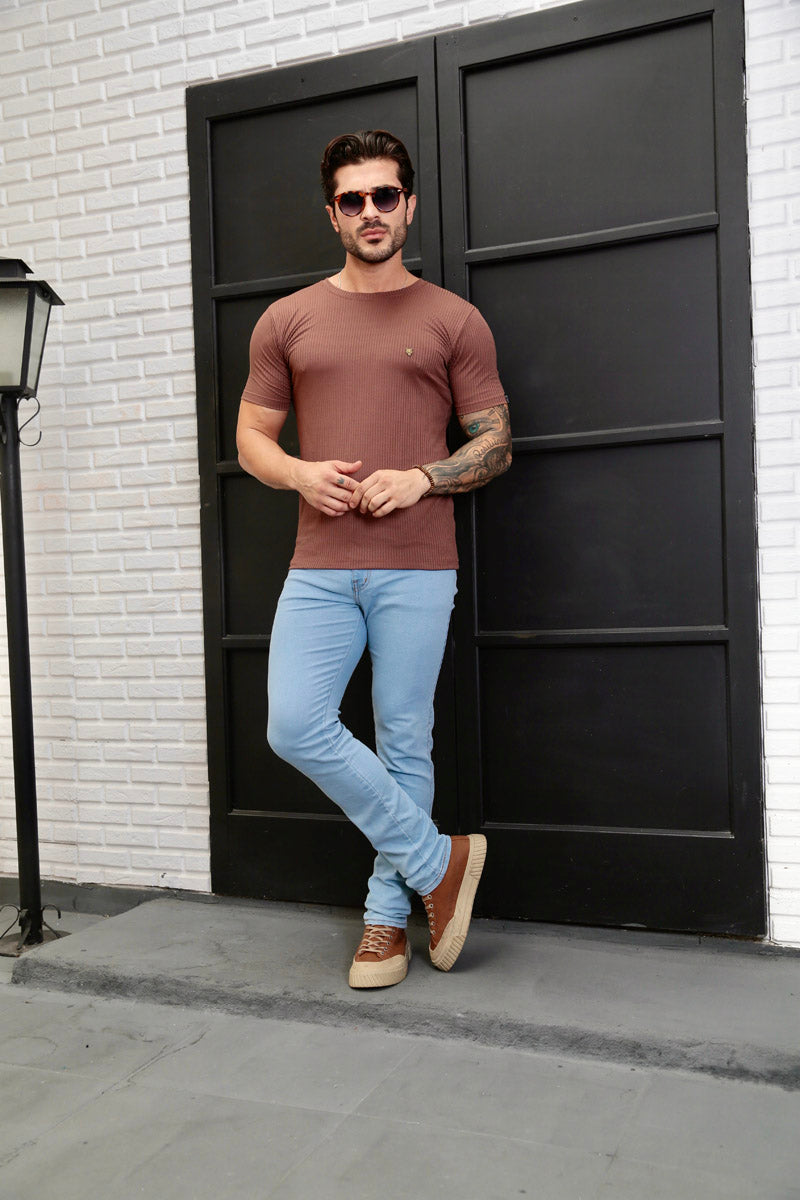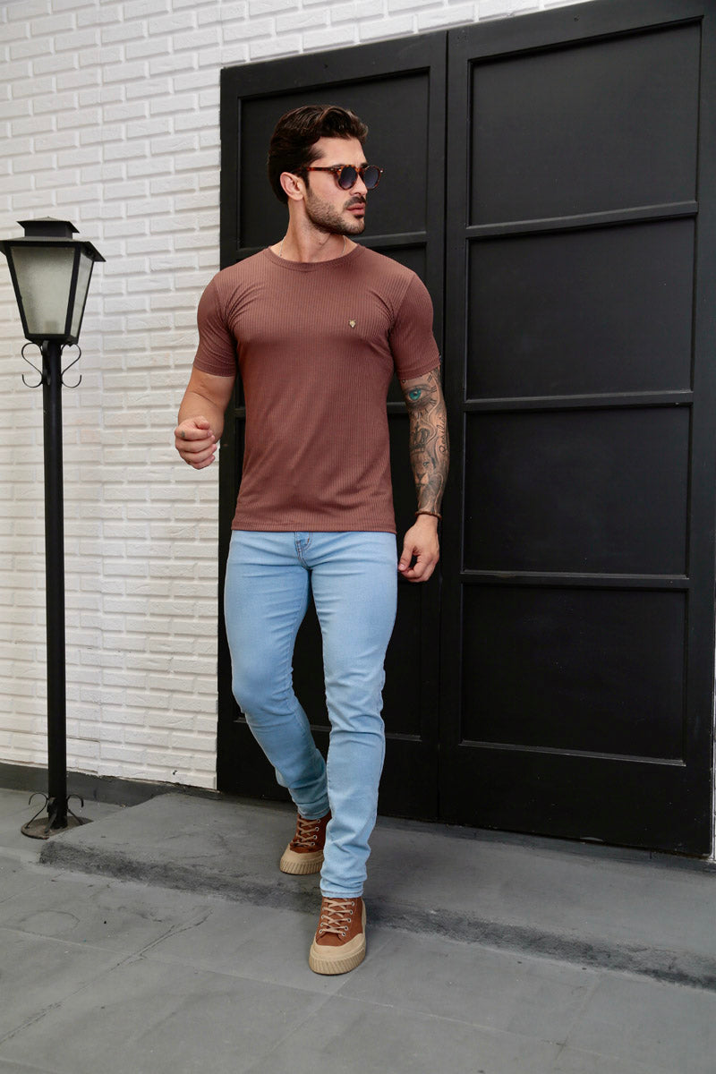 Camiseta Canelada Marrom Logo Metal Volk Culture Supreme