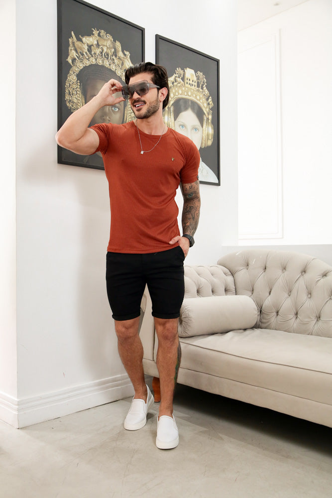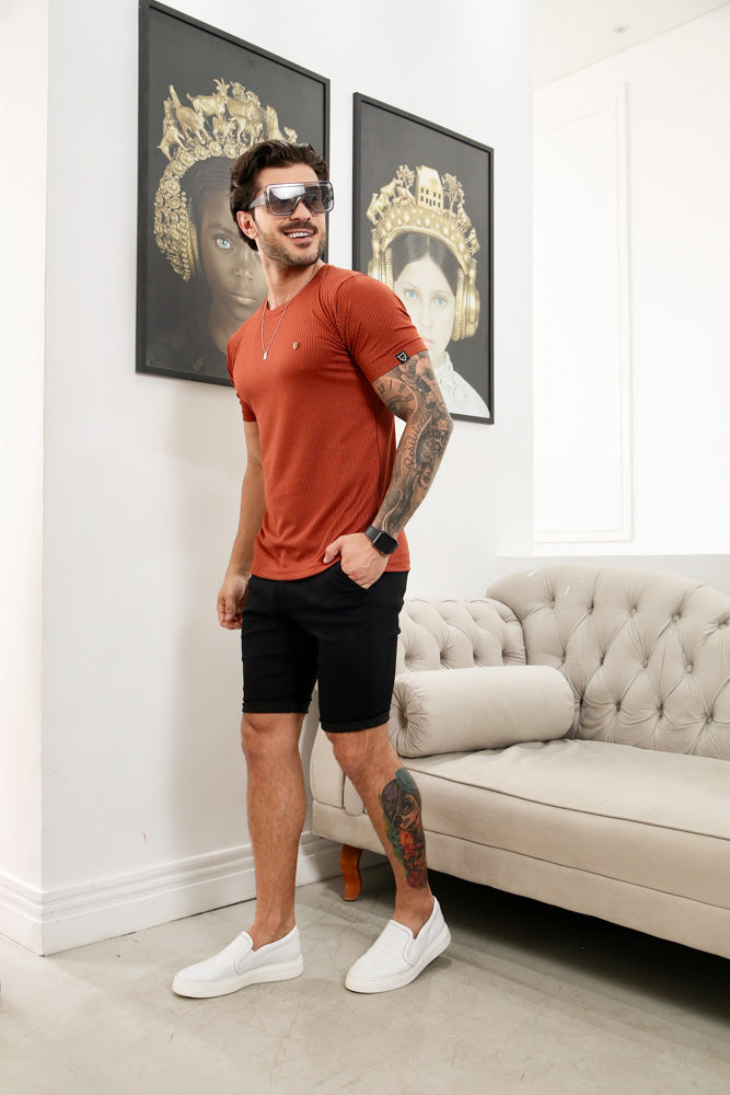 Apresentamos a Camiseta Canelada Terracota com Logo Metal da Volk Culture Supreme, uma peça que eleva seu estilo a um novo patamar. Feita em um tecido canelado de alta qualidade, com uma composição de 96% poliéster e 4% elastano, ela proporciona um toque macio e um ajuste perfeito, ideal para qualquer look masculino. Seja para um visual despojado, esportivo ou social, sua tonalidade terracota e o elegante detalhe do logo metalizado conferem um ar de grandeza e sofisticação. Indispensável no seu guarda-roupa, a Camiseta Canelada Terracota é a escolha perfeita para quem deseja se destacar com autenticidade e estilo em todas as ocasiões. Com ela, seu look nunca mais será o mesmo!