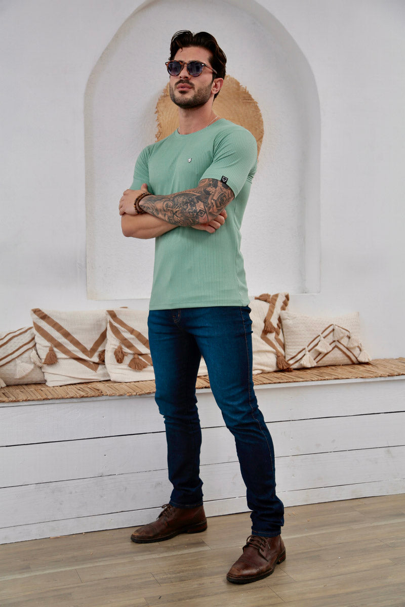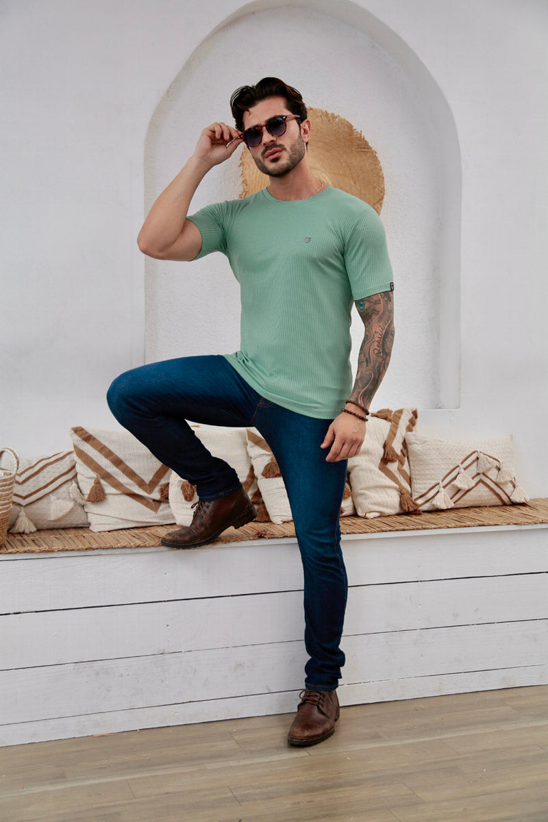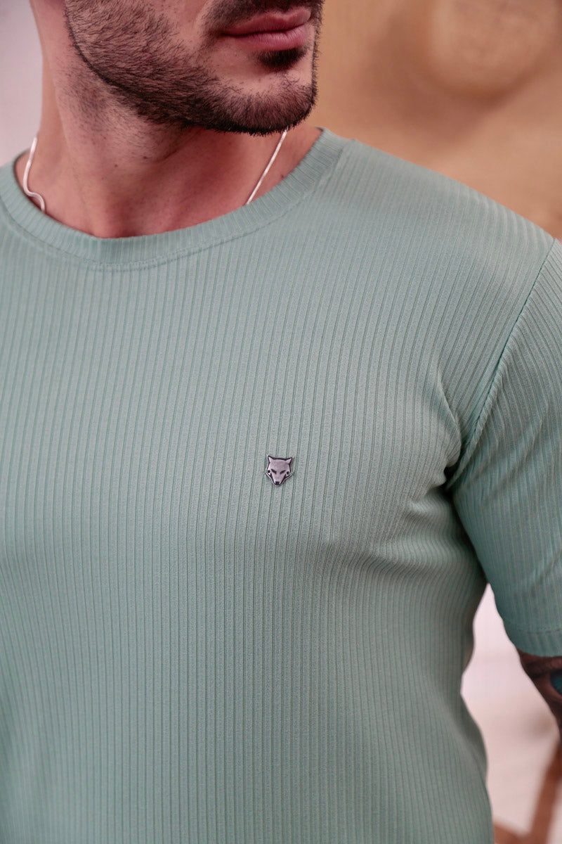 Camiseta Canelada Verde Água Logo Metal Volk Culture Supreme