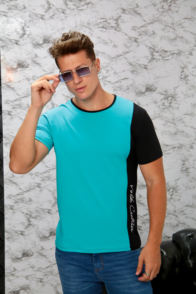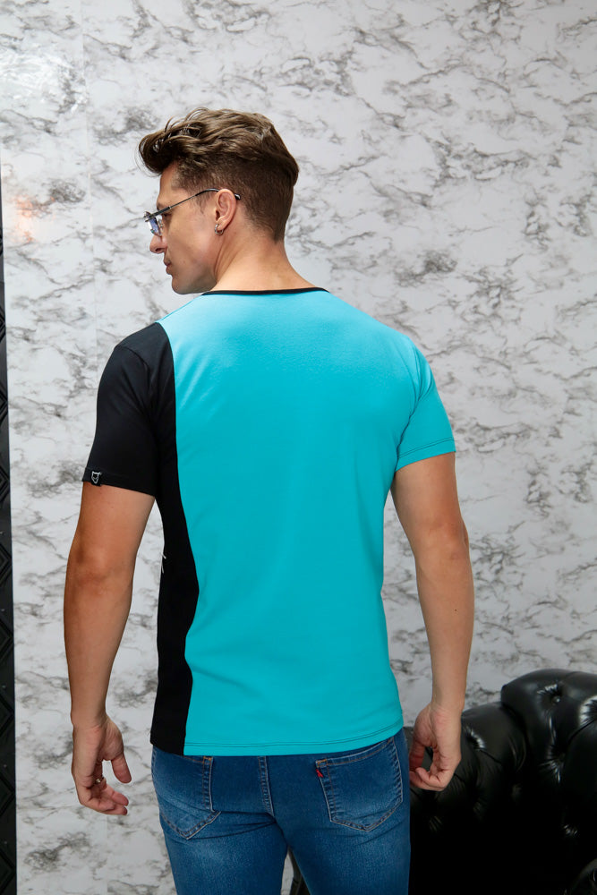 Camiseta Dual Preto e Azul Piscina Assinatura Cotton