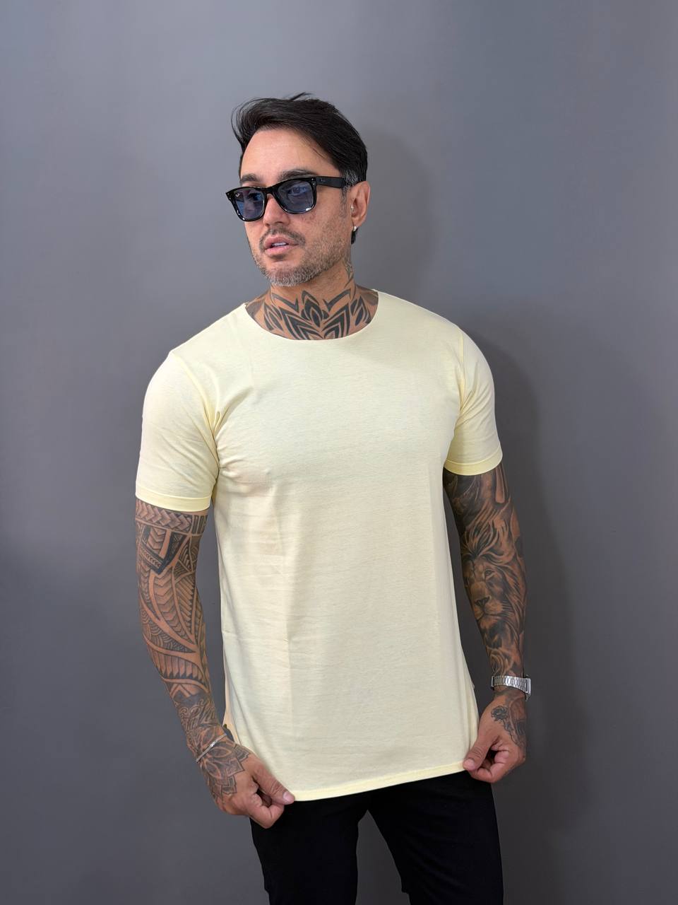 Camiseta Long Line Volk Culture Amarelo Bebê Gola Canoa