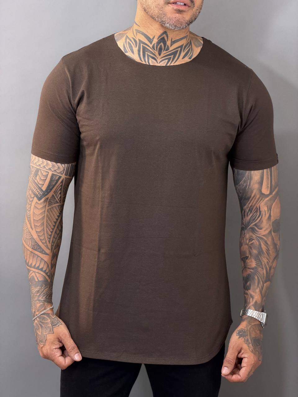 Prepare-se para o verão com a Camiseta Masculina Long Line Volk Culture na vibrante tonalidade Marrom escuro! Perfeita para quem busca um visual moderno, leve e autêntico, esta camiseta é a combinação ideal de conforto e tendência para os dias mais quentes.