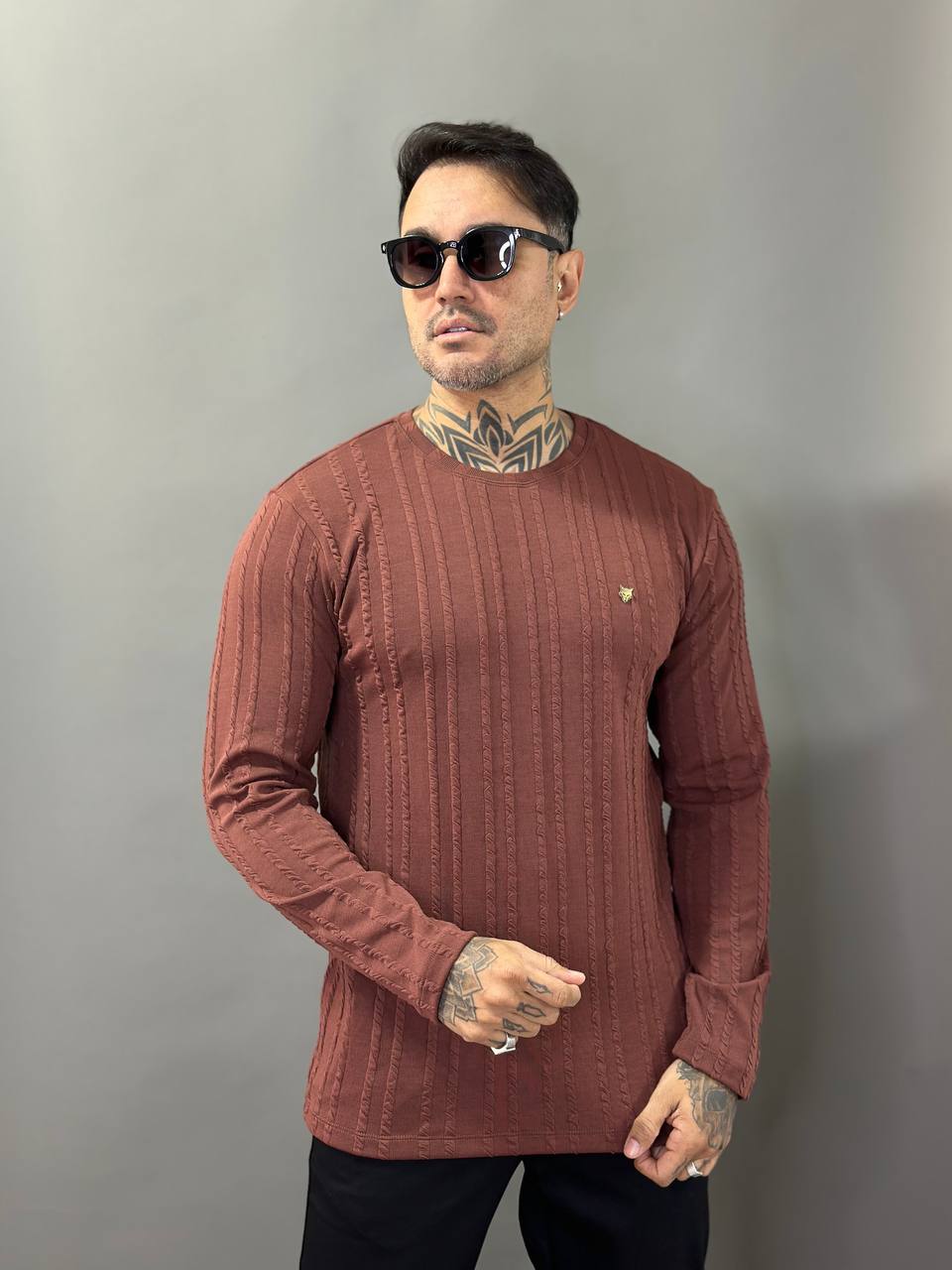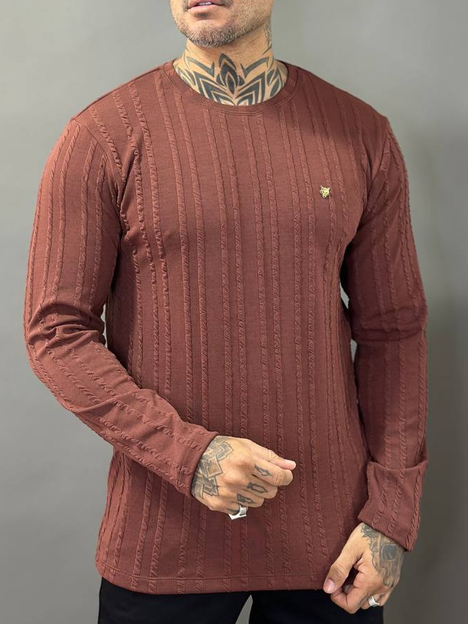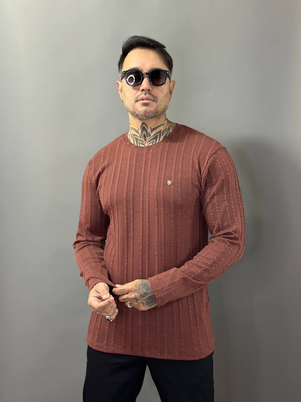 O Suéter Monaco Texturizado Café da Volk Culture é a escolha ideal para homens que desejam unir estilo, conforto e presença em qualquer ocasião.