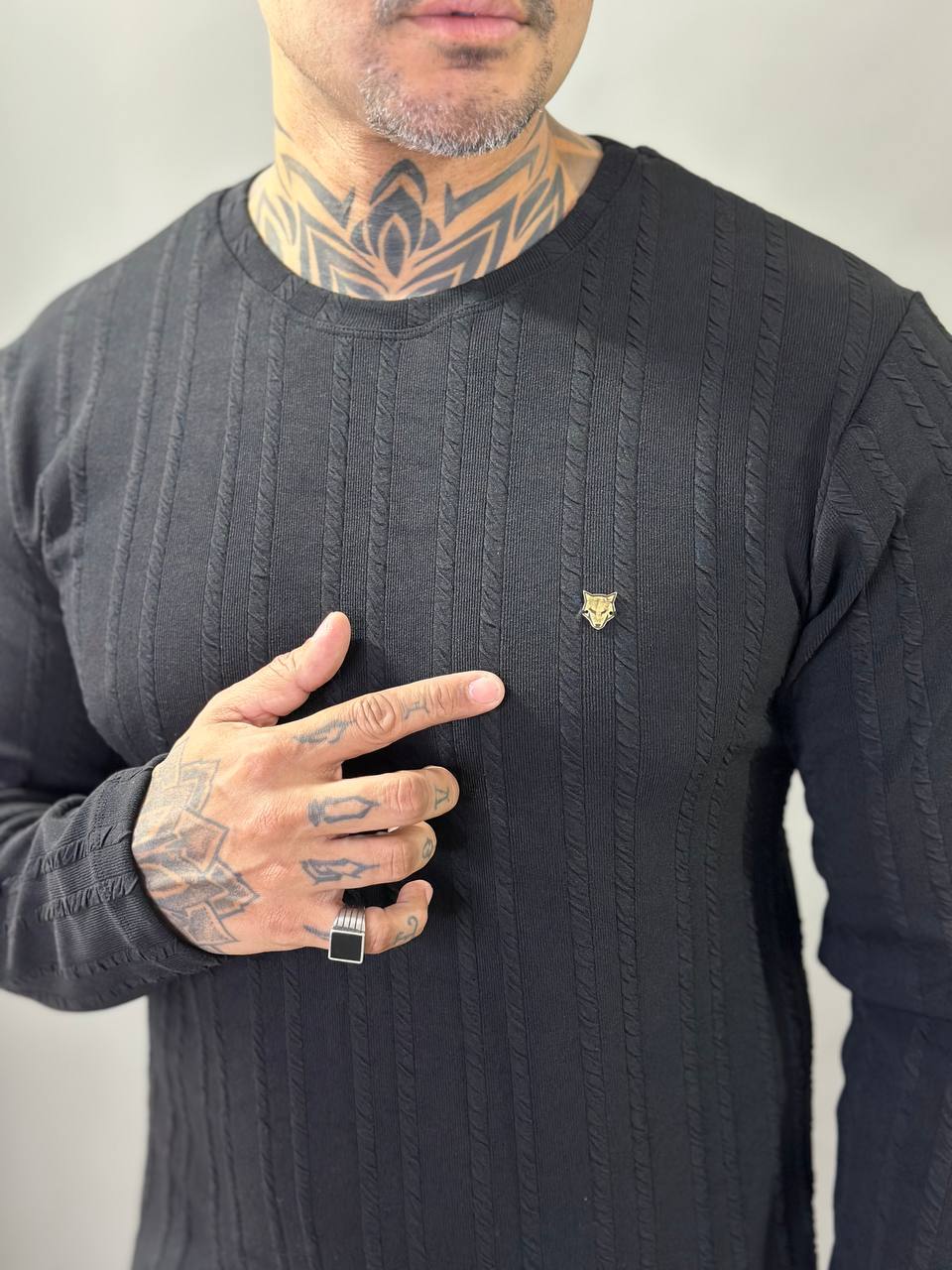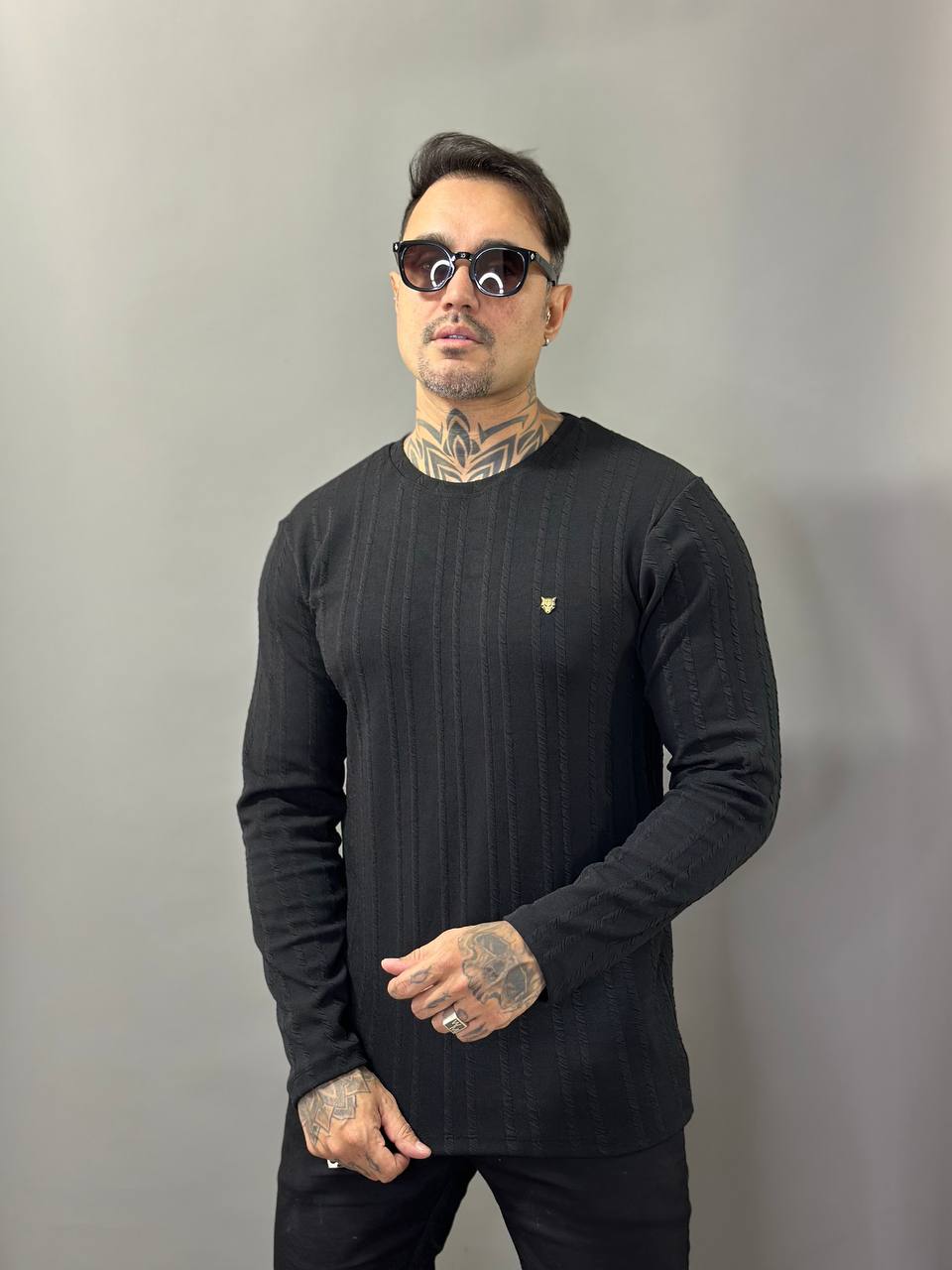 O Suéter Monaco Texturizado Preto da Volk Culture é a escolha ideal para homens que desejam unir estilo, conforto e presença em qualquer ocasião.